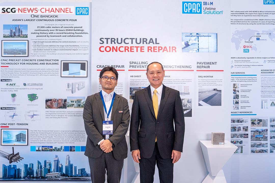 สำหรับภายในงาน ยังมีการจัดบูธนิทรรศการร่วมนำเสนอ นวัตกรรมคอนกรีตกำลังอัดสูง ซีแพค และเทคโนโลยี สำหรับงานซ่อม เสริมกำลัง จาก CPAC SB&M Lifetime Solution ผ่านความร่วมมือกับพันธมิตรญี่ปุ่น Shobond & Mitsui Infrastructure Maintenance Corporation หรือ SB&M ผู้เชี่ยวชาญด้านการซ่อมแซมเชิงลึก ที่มีประสบการณ์กว่า 60 ปี ทั้งด้านเทคโนโลยี วัสดุศาสตร์ และการพัฒนานวัตกรรมซ่อมแซมโดยเฉพาะ สำหรับสภาพแวดล้อมในภูมิภาคอาเซียนแสดงถึง ศักยภาพผู้นำด้านเทคโนโลยีคอนกรีต และความพร้อมในการเป็นผู้ให้บริการโซลูชัน ด้านการซ่อมแซมและบำรุงรักษา โครงสร้างแบบครบวงจรที่รองรับปัญหาด้านภัยพิบัติ