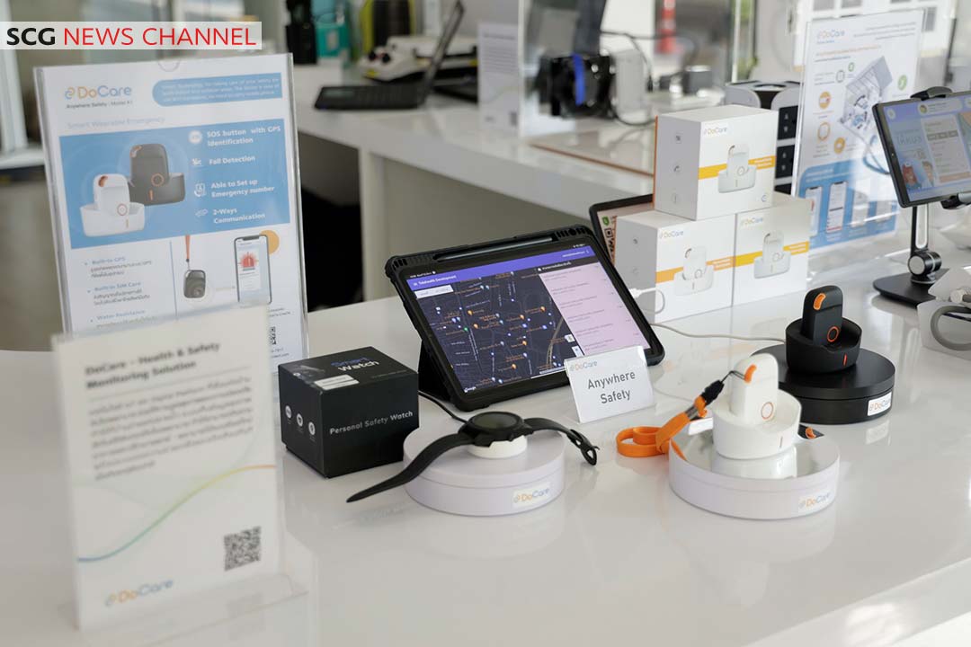 นอกเหนือจากโซลูชันด้านคุณภาพอากาศแล้ว นวัตกรรมเกี่ยวกับสุขภาพ และความปลอดภัยก็มีความสำคัญไม่แพ้กัน วชิระชัยได้สาธิตอุปกรณ์คล้องคอที่เรียกว่า DoCare หรือโซลูชันเฝ้าระวังสุขภาพและความปลอดภัย ของผู้สวมใส่แบบเรียลไทม์ เช่น หากให้ผู้สูงอายุสวมใส่ และเกิดหกล้มหรือรู้สึกไม่ค่อยดี สามารถกดปุ่มขอความช่วยเหลือ ซึ่งจะต่อสายไปโอเปอเรเตอร์ ให้เรียกรถพยาบาลมารับได้ทันที