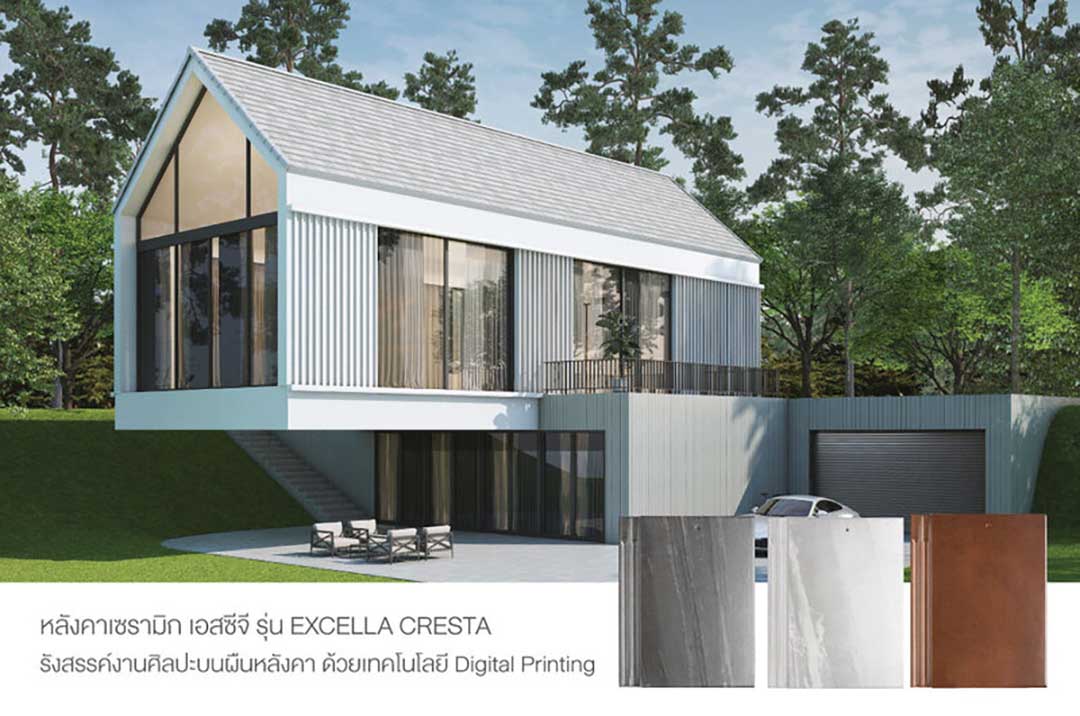 1. ด้านความสวยงาม เอสซีจีได้พัฒนาเทคโนโลยี Digital Printing นำมาสร้างสรรค์ลวดลายบนวัสดุให้มีความสวยงาม โดดเด่น แตกต่าง สมจริง แต่ยังคงซึ่งคุณสมบัติและคุณภาพที่ดีของผลิตภัณฑ์ อาทิ หลังคาเซรามิก รุ่น EXCELLA CRESTA หลังคาที่สามารถรังสรรค์งานศิลปะบนหลังคาอย่างไร้ขีดจำกัดรายแรกและรายเดียวของประเทศไทย ถือเป็นอีกขั้นของการพิมพ์ลวดลายบนแผ่นกระเบื้องด้วยเทคโนโลยีระบบดิจิตอล ก่อนนำไปเผาด้วยอุณหภูมิ 1,100 องศาเซลเซียส เพื่อให้สีสวยทน ไม่ซีดจาง เปิดตัวคอลเลคชันแรกด้วยลวดลายธรรมชาติเสมือนจริง 3 เฉดสี แต่ละสีมีลวดลายสูงสุด 33 ลาย เพื่อความสวยสมจริง ลูกค้าสามารถนำมาสร้างความแตกต่างที่ลงตัวได้ตามต้องการ