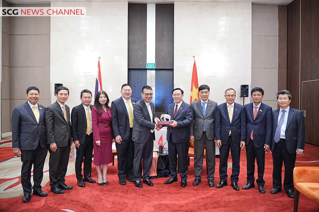 เอสซีจีโดยนายรุ่งโรจน์ รังสิโยภาส กรรมการผู้จัดการใหญ่ เอสซีจี ให้การต้อนรับนายเวือง ดิ่งห์ เหวะ (H.E Mr. Vuong Dinh Hue) ประธานสภาแห่งชาติสาธารณรัฐสังคมนิยมเวียดนาม ในโอกาสเดินทางเยือนประเทศไทยอย่างเป็นทางการ เพื่อฉลองการครบรอบ 10 ปีของความเป็นหุ้นส่วนยุทธศาสตร์ไทย-เวียดนาม และยังได้เจรจาการดำเนินธุรกิจ การลงทุนร่วมกัน นับเป็นการสานความสัมพันธ์ และเสริมสร้างศักยภาพ เศรษฐกิจของทั้งสองประเทศ ให้แข็งแกร่งยิ่งขึ้น