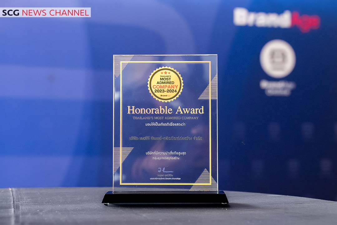 เอสซีจี คว้ารางวัล 2023-2024 Thailand’s Most Admired Company กลุ่มธุรกิจวัสดุก่อสร้าง ติดต่อกันมากว่า 10 ปี การันตีความมุ่งมั่นในการพัฒนาและบริหารองค์กรให้เป็นที่ยอมรับในกลุ่มผู้บริโภค ทั้งด้านการสร้างสรรค์นวัตกรรม ความสามารถในการดำเนินธุรกิจ ความรับผิดชอบต่อสังคม และการให้บริการ