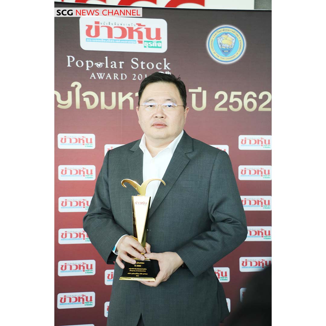 เอสซีจี โดย นายธรรมศักดิ์ เศรษฐอุดม (ขวา) ผู้ช่วยผู้จัดการใหญ่-การเงินและการลงทุน รับมอบรางวัล “หุ้นขวัญใจมหาชน ประจำกลุ่มอสังหาริมทรัพย์และก่อสร้าง” ต่อเนื่องเป็นปีที่ 2 จากนายชาญชัย สงวนวงศ์ (ซ้าย) ผู้อำนวยการหนังสือพิมพ์ข่าวหุ้นธุรกิจ ในการประกาศรางวัล “หุ้นขวัญใจมหาชน” ปีที่ 8 ซึ่งจัดโดยหนังสือพิมพ์ข่าวหุ้นธุรกิจ มหาวิทยาลัยหอการค้าไทย และบริษัท แอสเซส โปร เมนเนจเม้นท์ จำกัด (APM) ซึ่งได้รับการสนับสนุนจากตลาดหลักทรัพย์แห่งประเทศไทย (ตลท.)
