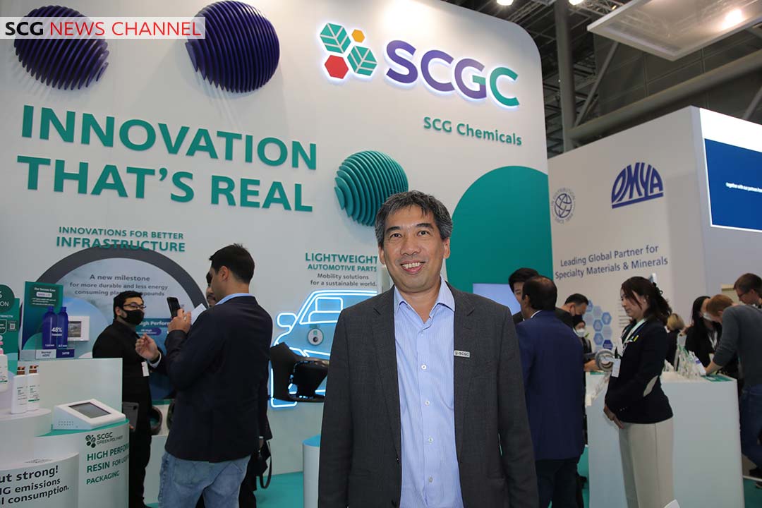 ดร.สุรชา อุดมศักดิ์ รองผู้จัดการใหญ่ และประธานเจ้าหน้าที่สายงานนวัตกรรม บริษัทเอสซีจี เคมิคอลส์ จำกัด (มหาชน) หรือ SCGC  กล่าวว่า “งาน K 2022 มีผู้เข้าร่วมจัดแสดงนวัตกรรมกว่า 3,300 รายจากทั่วโลก ซึ่งในปีนี้ SCGC ได้นำเสนอนวัตกรรมพลาสติก ภายใต้แนวคิด INNOVATION THAT’S REAL” นวัตกรรมเคมีภัณฑ์เพื่อทุกความเป็นไปได้ เพื่อตอบโจทย์เมกะเทรนด์โลก มุ่งเน้นนวัตกรรมที่เป็นมิตรกับสิ่งแวดล้อม หรือ Green Innovation ภายใต้หลักเศรษฐกิจหมุนเวียน การลดใช้พลังงาน และลดการปล่อยก๊าซเรือนกระจก โดยได้พัฒนาสินค้าและบริการที่มีมูลค่าเพิ่มสูง (High Value Added Products & Services – HVA) ตอบรับ 5 อุตสาหกรรมที่มีการเติบโตสูง อย่างต่อเนื่องตามเมกะเทรนด์โลก ได้แก่ กลุ่มบรรจุภัณฑ์ ยานยนต์ โครงสร้างพื้นฐาน สุขภาพ และโซลูชันด้านพลังงาน