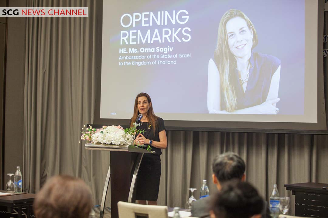 นางออร์นา ซากิฟ เอกอัครราชทูตรัฐอิสราเอลประจำประเทศไทย กล่าวว่า “อิสราเอลเป็นประเทศเล็ก ๆ ที่ต้องเผชิญกับความท้าทายมากมาย ตั้งแต่ก่อตั้งประเทศขึ้นมา ทั้งการขาดแคลนทรัพยากรธรรมชาติและตั้งอยู่ในภูมิศาสตร์ที่ท้าทาย อิสราเอลจึงจำเป็นต้องเร่ง พัฒนาทรัพยากรมนุษย์ ยกระดับศักยภาพความเป็นผู้ประกอบการ และความเป็นผู้นำด้านเทคโนโลยี รวมถึงพัฒนางานวิจัยที่ก้าวหน้าและมีคุณภาพ พร้อมทั้งสร้างระบบนิเวศที่แข็งแกร่งและเป็นเอกลักษณ์ซึ่งประกอบด้วยภาครัฐ สถาบันการศึกษา บริษัทข้ามชาติ กองกำลังป้องกันอิสราเอล และการระดมทุนจากภาคเอกชน ทั้งนี้ ในช่วงไม่กี่ปีที่ผ่านมา อิสราเอลได้เปลี่ยนจากการเป็น “ประเทศแห่งสตาร์ตอัป” ไปสู่การเป็น “ประเทศแห่งยูนิคอร์น” โดยมีบริษัทที่มีมูลค่ามากกว่า 1 พันล้านดอลลาร์สหรัฐ เกือบ 100 แห่ง และในวันนี้เรามีความยินดีอย่างยิ่ง ที่ได้เห็นความสำเร็จของความร่วมมือแรก ที่เกิดขึ้นจากการลงนามความร่วมมือ (MoU) ระหว่าง NIA และ IIA โดยเป็นโครงการนำร่องจาก SCGC และ Plastic Back ที่มีเป้าหมายร่วมกันในการลดปริมาณพลาสติกใช้แล้วด้วยเทคโนโลยีที่เป็นเอกลักษณ์ซึ่งพัฒนาโดย Plastic Back โครงการนี้เป็นเพียงจุดเริ่มต้น และเราเชื่อมั่นว่าจะมีโครงการที่ประสบความสำเร็จ อีกมากมายตามมาในอนาคต การรวมตัวกันระหว่างสตาร์ตอัปของอิสราเอลและบริษัทใหญ่ในประเทศไทยครั้งนี้ จะสามารถสร้างประโยชน์ให้กับประชาชน ของทั้งสองประเทศได้อย่างแน่นอน”