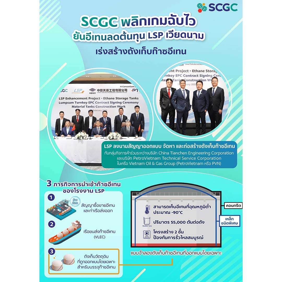 SCGC พลิกเกมฉับไว ยันวัตถุดิบก๊าซอีเทนช่วยลดต้นทุน LSP เวียดนาม เร่งสร้างถังเก็บก๊าซอีเทน มั่นใจสำเร็จตามแผน รับตลาดปิโตรเคมีในภูมิภาคช่วงฟื้นตัว