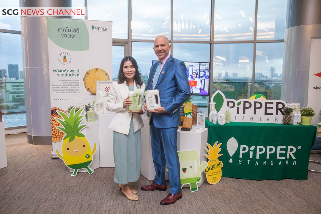 นางสาวศิริลักษณ์ ณรงค์ตะณุพล ประธานเจ้าหน้าที่บริหารร่วมและกรรมการผู้จัดการ บริษัท อิเควเตอร์ เพียวเนเจอร์ จำกัด ผู้ผลิตและจำหน่ายผลิตภัณฑ์ทำความสะอาดจากธรรมชาติแบรนด์ “PiPPER STANDARD” (พิพเพอร์ สแตนดาร์ด) กล่าวว่า ได้ร่วมกับ SCGP เพื่อพัฒนาแบบและพัฒนาบรรจุภัณฑ์ สำหรับผลิตภัณฑ์ทำความสะอาดของบริษัทฯ ที่มีส่วนผสมจากธรรมชาติ 100% รวมถึงได้ร่วมกันจัดโครงการ “ข.ขวด พิพเพอร์ มารีไซเคิล” ในการนำขวดพลาสติกที่ผ่านการใช้งานแล้ว มาคัดแยกประเภท ผ่านกระบวนการทำความสะอาด ปรับปรุงคุณสมบัติด้วยเทคโนโลยีและนวัตกรรม เพื่อส่งไปผลิตเป็นเม็ดพลาสติก Post-Consumer Recycled Resin (PCR) ก่อนนำไปขึ้นรูปเป็นขวดใหม่ นับเป็นการเดินตามหลักเศรษฐกิจหมุนเวียน (Circular Economy) อย่างครบวงจร