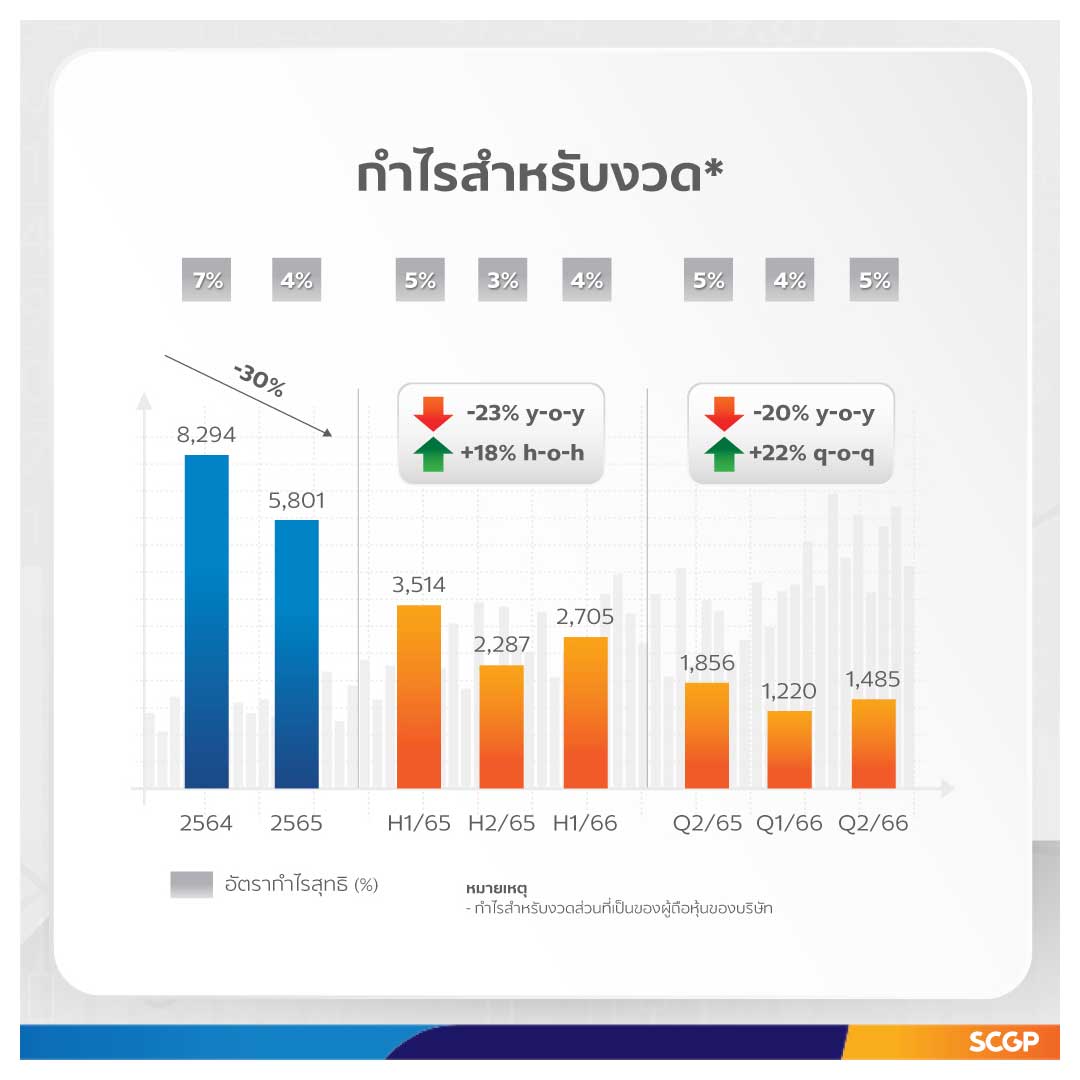 SCGP ประกาศผลการดำเนินงานไตรมาส 2 ปี 2566 ทำรายได้ 32,216 ล้านบาท ลดลงร้อยละ 4 เมื่อเทียบกับไตรมาสที่ผ่านมา ในขณะที่สามารถทำกำไรสำหรับงวดแข็งแกร่งที่ 1,485 ล้านบาท เพิ่มขึ้นร้อยละ 22 จากไตรมาสก่อน จากการบริหารต้นทุนอย่างมีประสิทธิภาพ และการมุ่งเน้นกลยุทธ์การผลิตบรรจุภัณฑ์ที่ตอบโจทย์ผู้บริโภค โดยเฉพาะในกลุ่มอาหารและเครื่องดื่มที่เติบโตสูง จากการฟื้นตัวของเศรษฐกิจในอาเซียนอย่างต่อเนื่อง การส่งออกอาหารแช่แข็งและอาหารกระป๋อง และการส่งออกผลไม้ไปยังประเทศจีนที่เพิ่มขึ้น มองแนวโน้มภาพรวมอุตสาหกรรมบรรจุภัณฑ์ครึ่งปีหลังโตต่อเนื่อง รุกกลยุทธ์ขยายการลงทุนในอาเซียน โดยเฉพาะในเวียดนามและอินโดนีเซีย ซึ่งเป็นประเทศที่มีศักยภาพสูง พร้อมกับทุ่มเทพัฒนานวัตกรรมระดับโลก ‘Bio-based Plastic จากชิ้นไม้ยูคาลิปตัสสับ’ และ ‘Wooden Foodservice Packaging’ จากไม้ยูคาลิปตัส หนุนการใช้ทรัพยากรทดแทน เสริมเศรษฐกิจให้แข็งแกร่งและสิ่งแวดล้อมที่ยั่งยืน