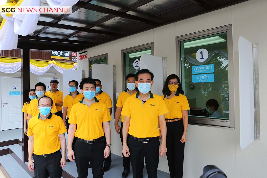 บริษัท สยามโกลบอลเฮ้าส์ จำกัด (มหาชน) และ มูลนิธิเอสซีจี ร่วมกันสนับสนุน “ห้องตรวจหาเชื้อและคัดกรองผู้ที่มีความเสี่ยง (Modular Screening & Swab Unit) และห้องน้ำสำเร็จรูป” ที่พัฒนาโดยเอสซีจี เพื่อเสริมความพร้อมหากมีสถานการณ์การระบาดของเชื้อโควิด-19 ระลอกใหม่ ซึ่งห้องตรวจหาเชื้อและคัดกรองผู้ที่มีความเสี่ยงดังกล่าว มีการแยกพื้นที่ระหว่างทีมแพทย์และคนไข้ออกจากกัน และใช้ระบบควบคุมแรงดันและคุณภาพอากาศที่เหมาะสม พร้อมมีระบบฆ่าเชื้อ ป้องกันการแพร่กระจายของเชื้อโรค โดยสามารถติดตั้งในพื้นที่จำกัดได้ในเวลารวดเร็ว ช่วยลดความเสี่ยงจากการติดเชื้อโควิด-19 ให้กับบุคลากรทางการแพทย์ขณะปฏิบัติหน้าที่ รวมทั้งผู้ที่มาใช้บริการ โดยมีนายวันชัย คงเกษม ผู้ว่าราชการจังหวัดร้อยเอ็ด เป็นประธานในงานรับมอบ พร้อมด้วย นายแพทย์ชลวิทย์ หลาวทอง ผู้อำนวยการโรงพยาบาลร้อยเอ็ด ดร.นายแพทย์พิทักษ์พงศ์  พายุหะ รองนายแพทย์สาธารณสุขจังหวัดร้อยเอ็ด คณะกรรมการโรคติดต่อจังหวัดร้อยเอ็ด นายวิทูร สุริยวนากุล ประธานเจ้าหน้าที่บริหาร บริษัท สยามโกลบอลเฮ้าส์ จำกัด (มหาชน) และนายบรรณ เกษมทรัพย์ Head of SCG Home Retail and Distribution Business เอสซีจี ร่วมในพิธี