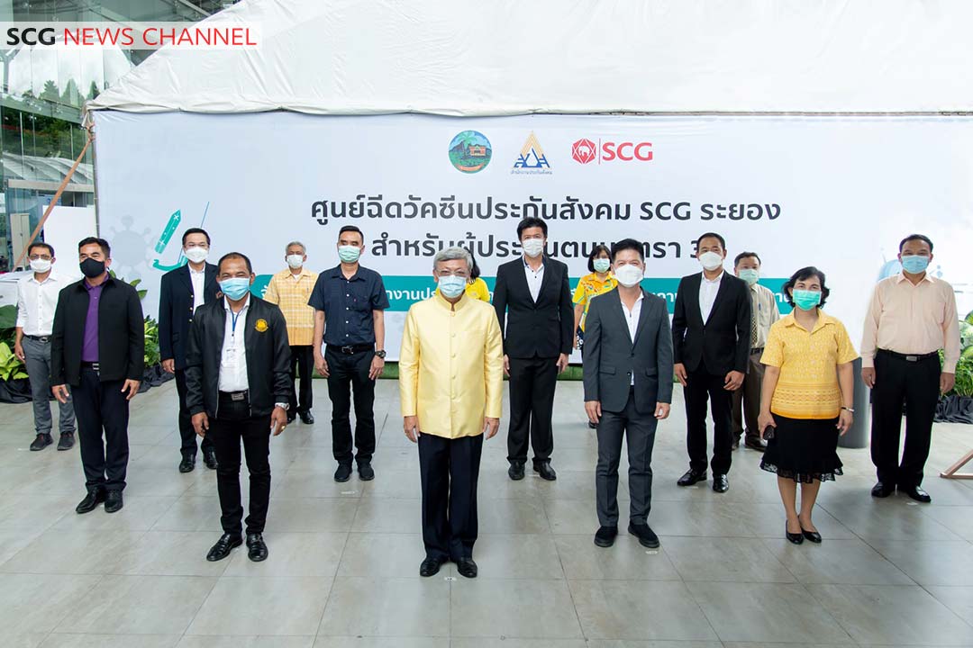 ทั้งนี้ การเปิดศูนย์ฉีดวัคซีนประกันสังคม SCG ระยอง ได้รับเกียรติจาก นายสุรชัย ชัยตระกูลทอง ผู้ช่วยรัฐมนตรีประจำกระทรวงแรงงาน นายชาญนะ เอี่ยมแสง ผู้ว่าราชการจังหวัดระยอง นายอนันต์ นาคนิยม รองผู้ว่าราชการจังหวัดระยอง ดร.ภานุพงศ์ จิตดล ที่ปรึกษารัฐมนตรีว่าการกระทรวงแรงงาน นายสมพงษ์ โสภณ สมาชิกสภาผู้แทนราษฎรจังหวัดระยอง นายแพทย์สุนทร เหรียญภูมิการกิจ นายแพทย์สาธารณสุขจังหวัดระยอง นางขนิษฐา ศรีบัวชุม ผู้อำนวยการประกันสังคมจังหวัดระยอง นายสันติโชค กุลเศรษฐ ผู้อำนวยการศูนย์ฟื้นฟูสมรรถภาพคนงานภาค 2 นายฉกาจ พัฒนศรี ผู้อำนวยการสำนักงานนิคมอุตสาหกรรมมาบตาพุด นายอนุชิต สวัสดิ์ ผู้อำนวยการสำนักงานนิคมอุตสาหกรรมร่วมดำเนินงานกลุ่มมาบตาพุด นายอำนวย ไตรลักษณ์ รองนายกเทศมนตรีเมืองมาบตาพุด นายสุรเชษฐ์ ซื่อมาก ประธานสภาเทศบาลเมืองมาบตาพุด ให้เกียรติเข้าเยี่ยมชมการดำเนินงานของศูนย์ฯ โดยมีตัวแทนจากธุรกิจเคมิคอลส์ เอสซีจี ได้แก่ นายปรีดา วัชรเธียรสกุล กรรมการผู้จัดการ บริษัทไทยโพลิเอททีลีน จำกัด นายพิเชษฐ์ ตั้งปัญญารัช กรรมการผู้จัดการ บริษัทระยอง โอเลฟินส์ จำกัด นายไพศาล เล็กสกุลไชย กรรมการผู้จัดการ บริษัทมาบตาพุด โอเลฟินส์ จำกัด นายบุญเอื้อม น้อยเอม กรรมการผู้จัดการ บริษัทอาร์ ไอ แอล 1996 จำกัด พร้อมด้วยผู้บริหารจากธุรกิจเคมิคอลส์ เอสซีจี ให้การต้อนรับ