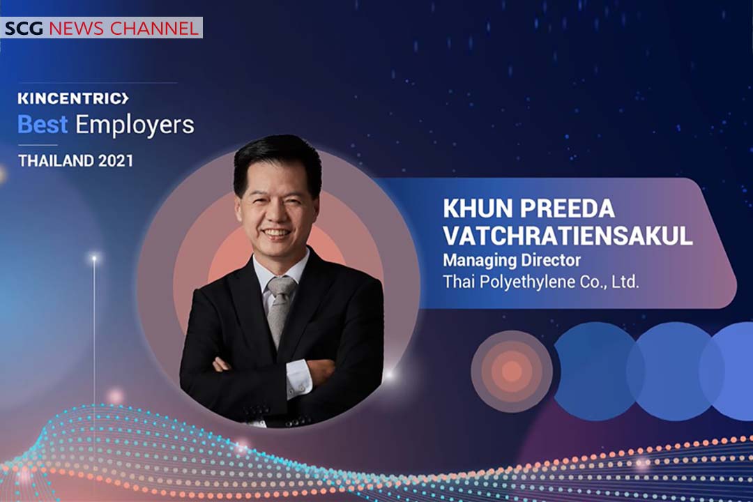 บริษัท ไทยโพลิเอททีลีน จำกัด ในเอสซีจี เคมิคอลส์ ได้รับรางวัล “สุดยอดองค์กรนายจ้างดีเด่นแห่งประเทศไทย (Kincentric Best Employers Thailand)” จากบริษัท คินเซนทริค (ประเทศไทย) จำกัด ซึ่งเป็นบริษัทที่ปรึกษาด้านการบริหารทรัพยากรบุคคลชั้นนำระดับโลก โดยร่วมกับสถาบันบัณฑิตบริหารธุรกิจศศินทร์แห่งจุฬาลงกรณ์มหาวิทยาลัย จัดงาน Kincentric Best Employers Thailand Virtual Awards and Learning Conference 2021 โดยมีนายปรีดา วัชรเธียรสกุล กรรมการผู้จัดการ บริษัท ไทยโพลิเอททีลีน จำกัด ในเอสซีจี เคมิคอลส์ เข้ารับรางวัล จาก ดร.อดิศักดิ์ จันทรประภาเลิศ กรรมการผู้จัดการ บริษัท คินเซนทริค (ประเทศไทย) จำกัด