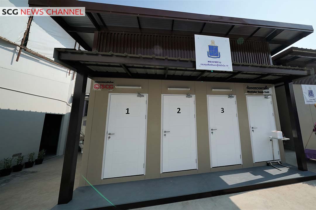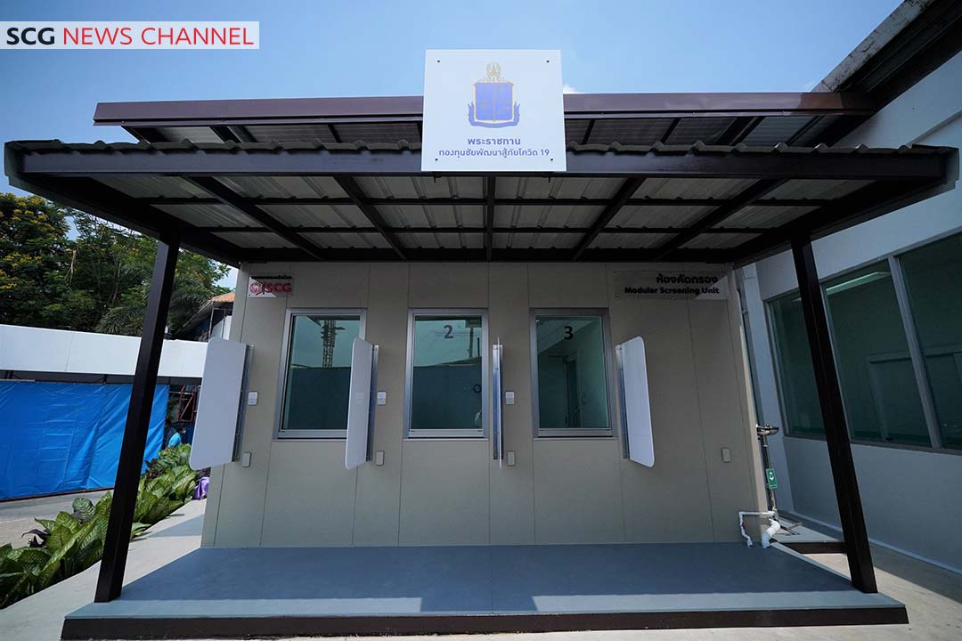 ทั้งนี้ ห้องคัดกรองและห้องตรวจเชื้อดังกล่าว เป็นเทคโนโลยีและนวัตกรรมของ SCG HEIM และ Living Solution โดยเอสซีจี ประกอบด้วยห้องตรวจคัดกรอง (Modular Screening Unit) ใช้ภายนอกอาคาร แบบมาตรฐาน ขนาด 3 ห้อง และห้องตรวจหาเชื้อ (Modular Swab Unit) ใช้ภายนอกอาคาร แบบมาตรฐาน ขนาด 3 ห้อง ซึ่งสามารถรองรับจำนวนผู้ที่เข้ามาตรวจคัดกรองและตรวจหาเชื้อได้เป็นอย่างดี อีกทั้งใช้เวลาติดตั้งเพียง 3 วัน ทำให้สามารถรับมือสถานการณ์การแพร่ระบาดของโควิด-19 ได้อย่างทันท่วงที และช่วยลดโอกาสในการติดเชื้อของบุคลากรทางการแพทย์และผู้เข้ารับการตรวจ ทั้งยังสร้างความปลอดภัยให้แก่ผู้ป่วยอื่น ๆ นอกจากนี้ โรงพยาบาลยังสามารถนำนวัตกรรมดังกล่าวไปใช้ประโยชน์ในการดูแลผู้ป่วยโรคระบบทางเดินหายใจอื่น ๆ ในอนาคตได้อีกด้วย