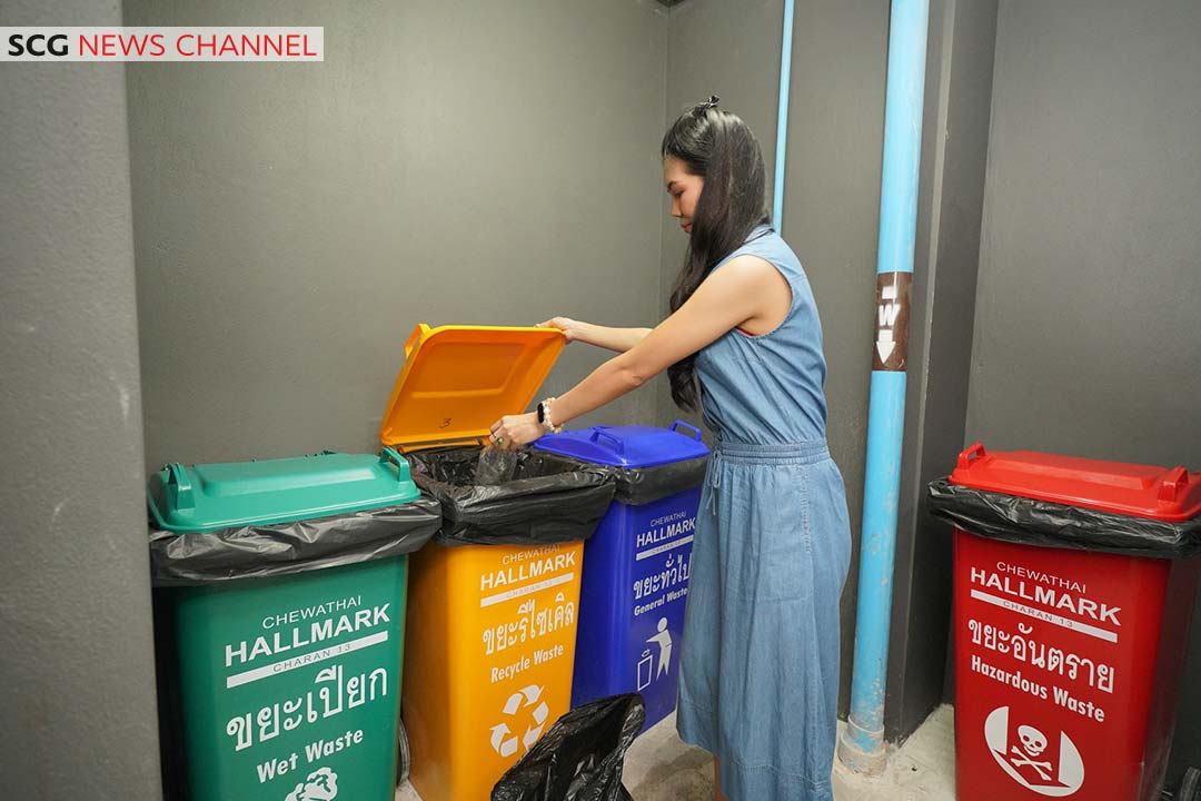 “สิ่งสำคัญคือ การสร้างการรับรู้ว่าขยะนำมาสร้างประโยชน์อะไรได้บ้าง โดยแนวทางแรกของเราคือการสร้างประโยชน์ต่อชุมชน เราได้รับความร่วมมืออย่างดีจาก SCGP reXycle เข้ามาทำโครงการร่วมกัน มีการรีไซเคิล นำกระดาษมาใช้ในโครงการให้เห็นว่าขยะที่ทิ้งไปก็สามารถหมุนเวียนกลับมาทำประโยชน์ได้ เช่น ทำเป็นของเล่นเด็กในพื้นที่ส่วนกลางจากลังกระดาษ รวมทั้งกระดาษเอกสารด้วย”